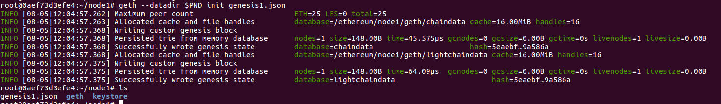 $PWD는 현재 디렉토리를 의미합니다. 즉 우리가 생성한 node1 디렉토리에 계정 정보가 담긴 파일 또는 디렉토리를 생성하게 됩니다.